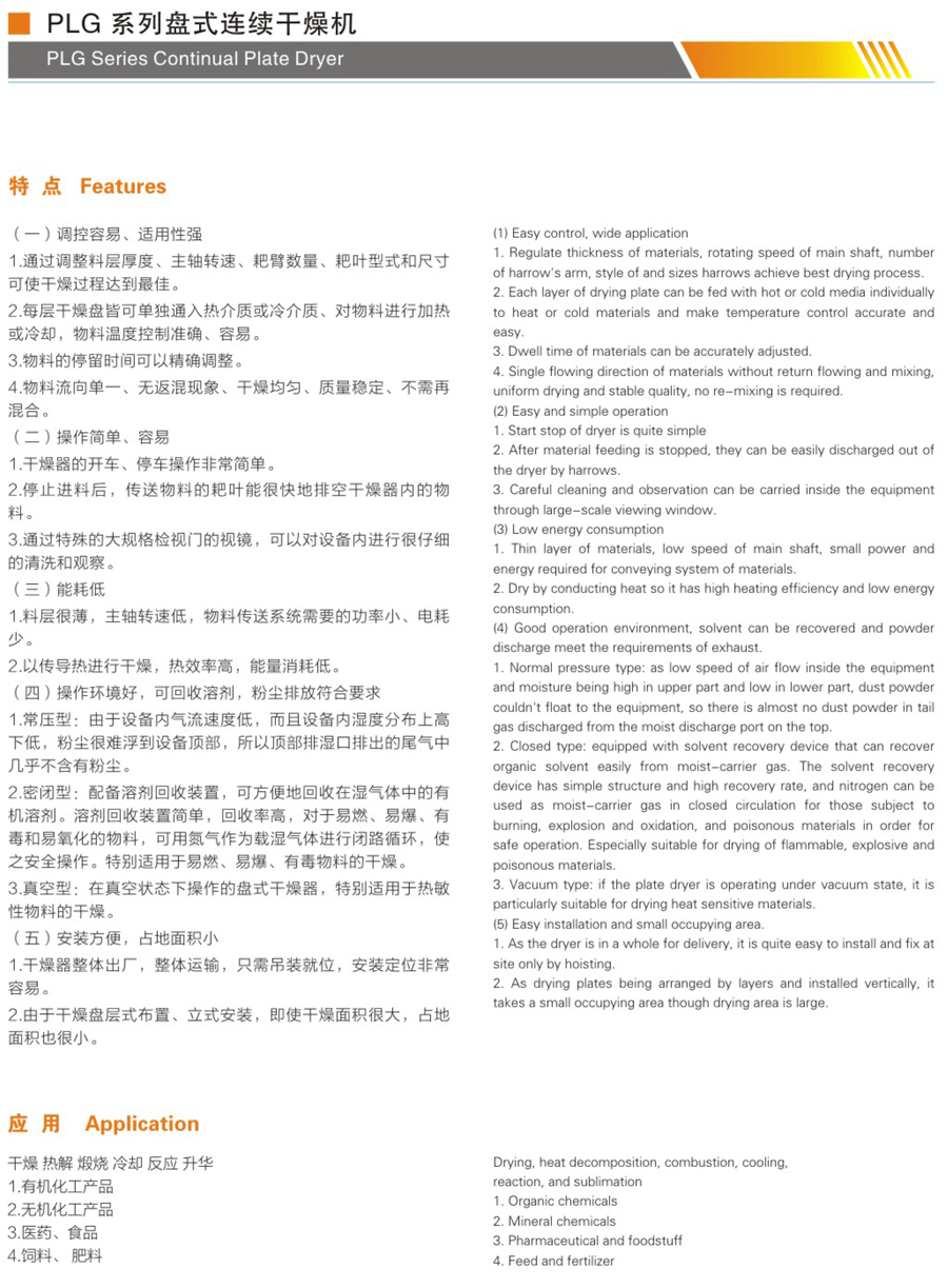 盤式干燥機是一種高效的傳導型連續干燥設備。其獨特的結構和工作原理決定了它具有熱效率高、能耗低,占地面積小、配置簡單、操作控制方便、操作環境好等特點,廣泛適用于化工、醫藥、農藥、食品、飼料、農副產品加工等行業的干燥作業。