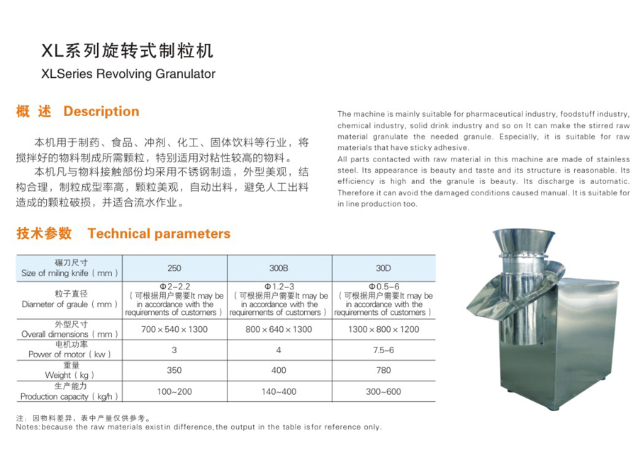 本機用于制藥、食品、沖劑、化工、固體飲料等行業,將攪拌好的物料制成所需顆粒,特別適用對粘性較高的物料。 設備特點 本機凡與物料接觸總價均采用不銹鋼制造,外型美觀,結構合理,制粒成型率高,顆粒美觀,自動出料,避免人工出料千萬顆粒破損,并適合流水作業。 工作原理 ![]() 外形尺寸 ![]() |