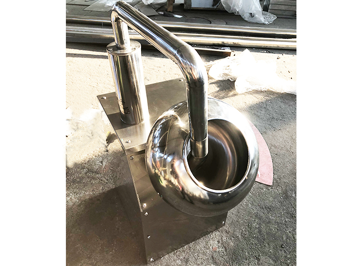 該衣機由機身、蝸輪箱體、糖衣鍋、加熱裝置、風機、電器等主要部分組成,它由電動機通過三角皮帶驅動蝸輪、蝸桿、帶動糖衣鍋旋轉,在離心力的作用下,使物料在鍋內作上下翻滾磨擦,達到糖衣混合,制丸和打光的效果。